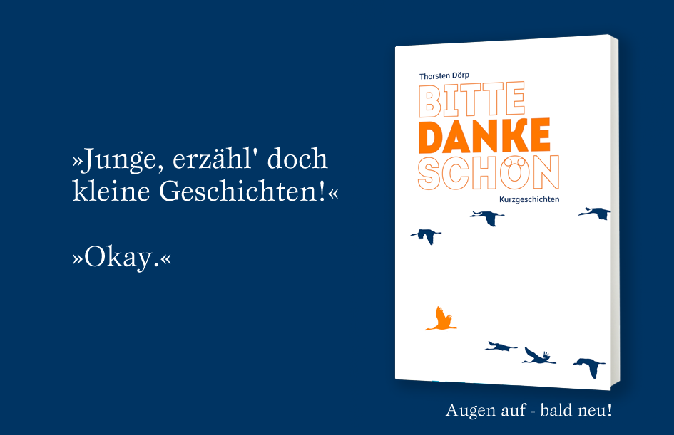 "Bitte Danke Schön" heißt der neu erscheinende Kurzgeschicheband. Neun meiner absoluten Lieblingsstories. Von traurig bis nachdenklich zu zynisch mit einem Umweg über's Lustige, um dann auf Rührung zu treffen, mit einem Finale in der Zauberei. Ich weiß, ich weiß - das streift ja das komplette Spektrum der Weltliteratur. Genau, das war ja auch das Ziel - also seid gespannt!